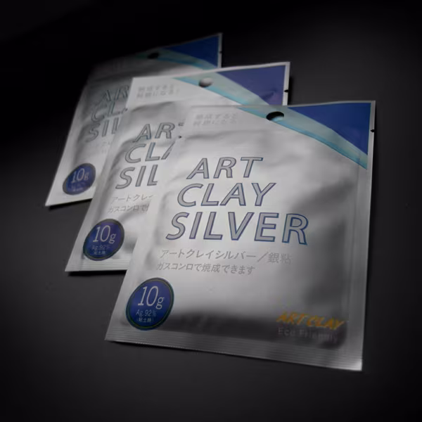 Art Clay to przemysłowo odzyskane czyste srebro, złoto lub miedź, do którego, po oczyszczeniu i sproszkowaniu, dodawany jest środek wiążący w postaci papieru oraz woda. W rezultacie uzyskujemy podobny nieco do gliny materiał, niezwykle łatwy do modelowania – stąd nazywamy go także srebrną glinką. Dzięki swojej plastycznej formie, glinka metalu daje nieograniczone możliwości tworzenia! Uformowany projekt suszymy, by całkowicie odparowała z niego woda. Po wysuszeniu praca zaczyna przypominać zaschnięty gips, który można poddawać obróbce typu: szlifowanie, wiercenie czy rzeźbienie. Gotowy projekt wypalamy w specjalnym piecu, na kuchence gazowej, w kuchence mikrofalowej lub przy pomocy palnika jubilerskiego. W trakcie obróbki termicznej papier spala się całkowicie, pozostaje zaś czysty metal – srebro najwyższej próby (999) czy 22 karatowe złoto.
